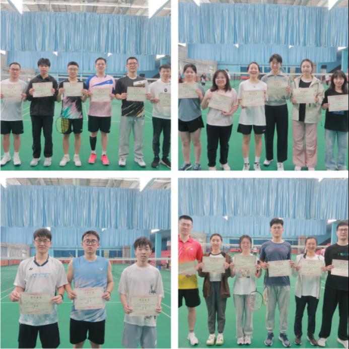 10月28日的比赛为员工赛,采取循环赛制,共有男单、男双、女双、混双四个项目。比赛中,选手们时而大力扣杀,时而轻盈吊球,展开了一场场激烈的对抗,比分在焦灼状态中交替攀升。他们奋勇拼搏的姿态,展现了交院员工朝气蓬勃的青春活力。经过激烈角逐,最终田之源同学获得男单冠军,曾家旺、潘奕辰同学获得男双冠军,喻亚文、林熙玲同学获得女双冠军,刘龙达、张桂青同学获得混双冠军。