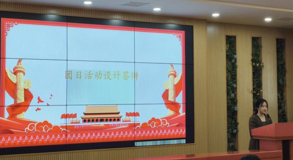 大会第三项,六院各派出一名团支书代表进行团日活动设计答辩。各院代表依次展示了本支部开展过的团日活动的策划设计,并从各个方面阐述自己的观点,分享工作经验。