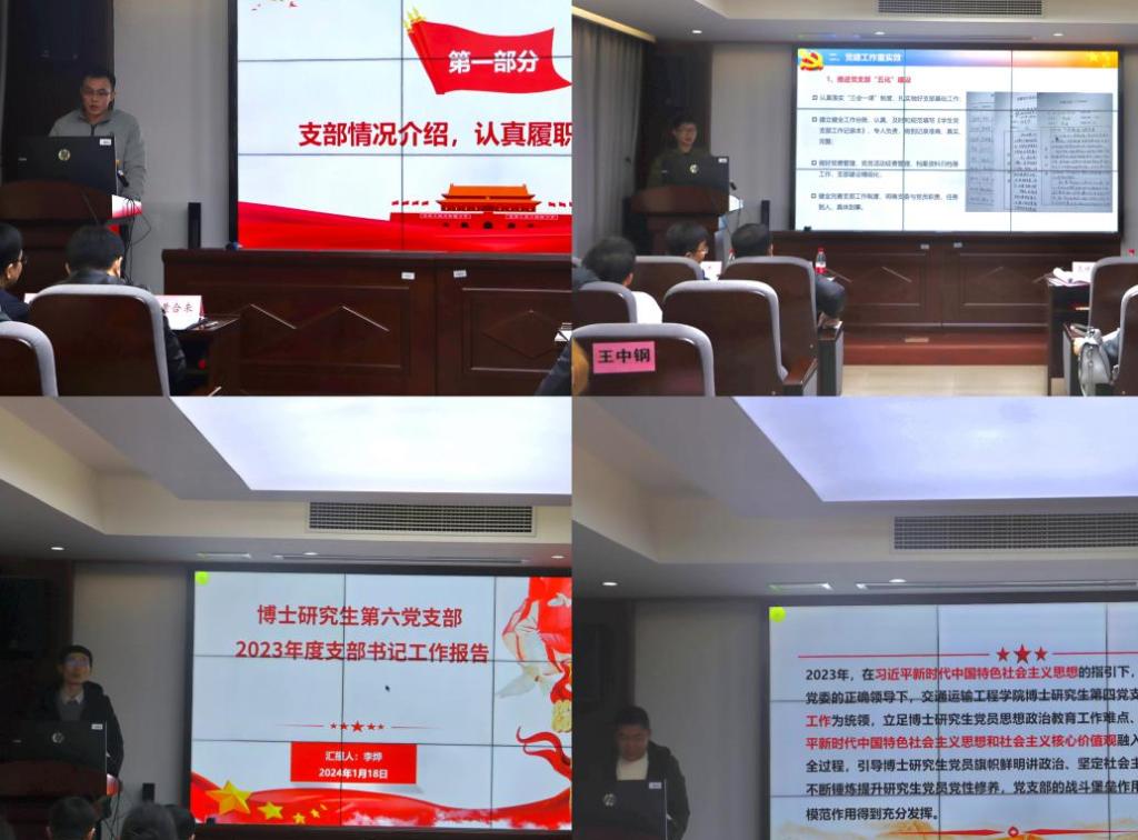 本次述职采取“一述一评”方式进行,大会伊始,交通运输系、交通设备系、物流工程系、高速列车研究中心4位教工党支部书记针对2023年支部整体建设情况,以及支部党员在夯实师德师风建设,助推团队建设与人才培养,丰富组织生活内容等方面的工作成效进行详细介绍,同时反思总结了目前支部建设存在的问题和改进措施。党委书记袁世平逐一进行点评,并就各教工党支部实际情况,提出瞄准支部建设短板、加强党建和科研相互融合、持续建设一流专业、创新党日活动形式、积极推进智慧型党建等建议。