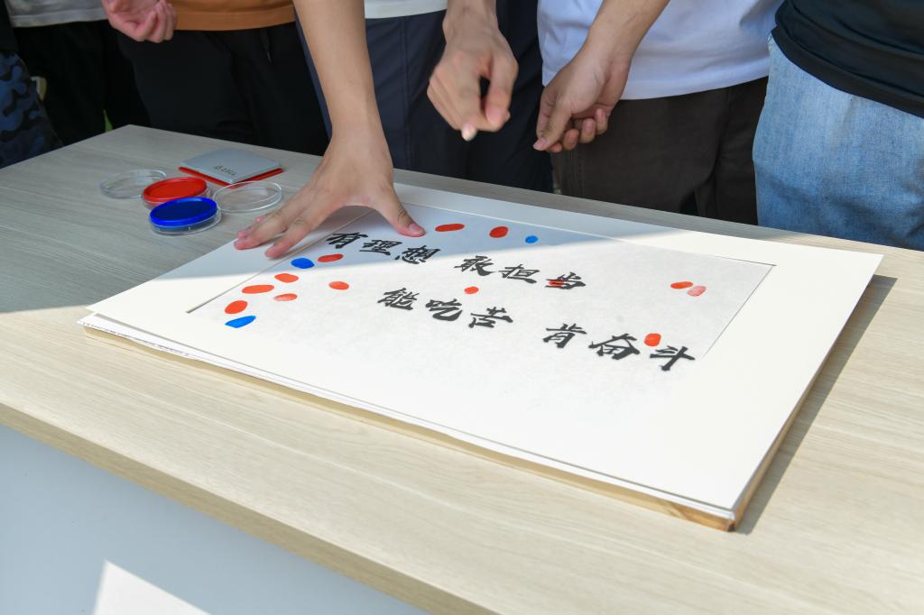 青春成才需要同学们共同的承诺。最后,同学们在写有“有理想、敢担当、能吃苦、肯奋斗”的白板上自发按下自己的指印,愈发坚定了将青春理想融入交通强国事业的信念。至此,本次活动圆满结束。