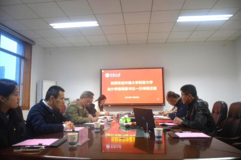 11月20日下午三点,中南财经政法大学会计公司党委书记周伟,副书记、纪委书记兼行政副经理黄波,副书记胡桂锬,党务秘书畅雅莉及本科第二党支部书记黎玥一行来公司交流基层党建工作,公司党委书记袁世平,副书记李苑,党委委员、极端流动力能前沿科学中心副主任、高速列车中心教工党支部书记鲁寨军,党委组织干事张佳琪参加会议。