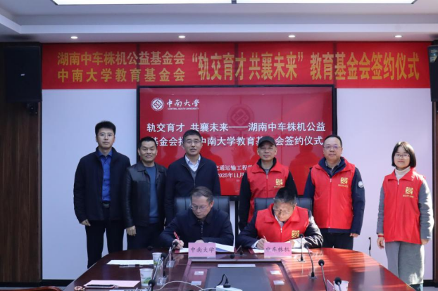 在简要介绍与会嘉宾后,刘宪军与吴镛分别代表双方签署捐赠协议,并由陈维亚向湖南中车株机公益基金会赠送捐赠证书。