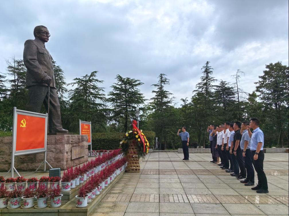 随后,公司党委一行在林伯渠铜像前进行瞻仰,敬献花篮并庄重鞠躬。6月的林伯渠铜像广场翠柏环绕,庄严肃穆,贺志军书记带领全体同志深深鞠躬,向革命先贤致以崇高的敬礼,并庄严举起右手重温入党誓词,声声铿锵中是对共产党人初心使命的坚守与担当。