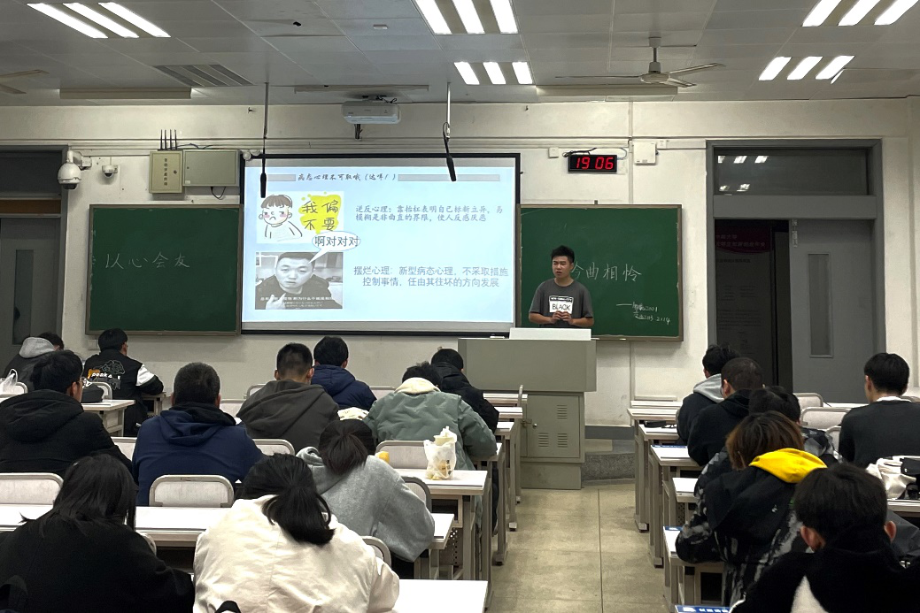 3月7日晚19:00,为响应公司号召,帮助同学们了解心理知识,学会如何正确对待日常生活中的心理问题,合理释放情绪,端正学习生活态度,过好老员工活,交运2113班联合交运2114班与物流2001班于A座211教室举行了“以心会友,衿曲相联”主题心理班会。交通运输类2113班班长霍钰嘉担任此次班会的主持人。活动伊始,霍钰嘉向同学们介绍了当下老员工常见的病态心理,如逆反心理、摆烂心理等,并提出了自己的观点及解决办法。他建议同学...