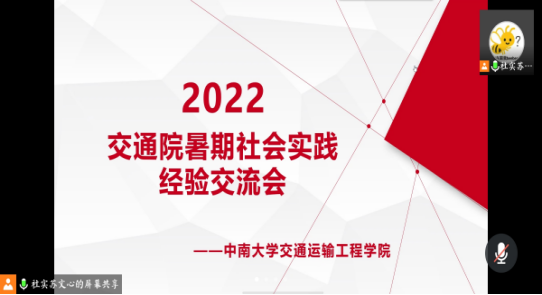 3月19日下午14:30,bv伟德国际2022年暑期社会实践经验分享会在线上顺利举行。部分本科20级、21级员工参加了本次会议。本次会议邀请了交运1801班靳凤悦、物流1901班胡铉宇和交运1802班游弋三位在往年暑期社会实践中表现优异的同学向大家分享经验。会议由苏文心同学主持。 会议伊始,三位同学分别作了经验分享。靳凤悦结合自己三次参加社会实践的经历,介绍了暑期实践的前期准备、实践过程、成果宣传、总结工作的情...