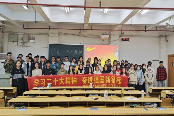 11月13日下午14:00,物流2001班、土木2002班和行管2101班于铁道公司世纪楼A402教室举行以“学习二十大精神,奋进强国新征程”为主题的团日活动。此次活动线下展开,由物流2001班团支书刘羽茜主持。活动伊始,公共管理公司雷望红老师为同学们讲解党的二十大精神。内容主要分为四个部分,第一部分是中国特色社会主义的内涵,雷老师就什么是中国特色社会主义进行提问,每一位同学都积极发表意见。第二部分通过举例优秀党员杨继善...